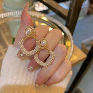 18k gold-plated pearl square pearl earrings