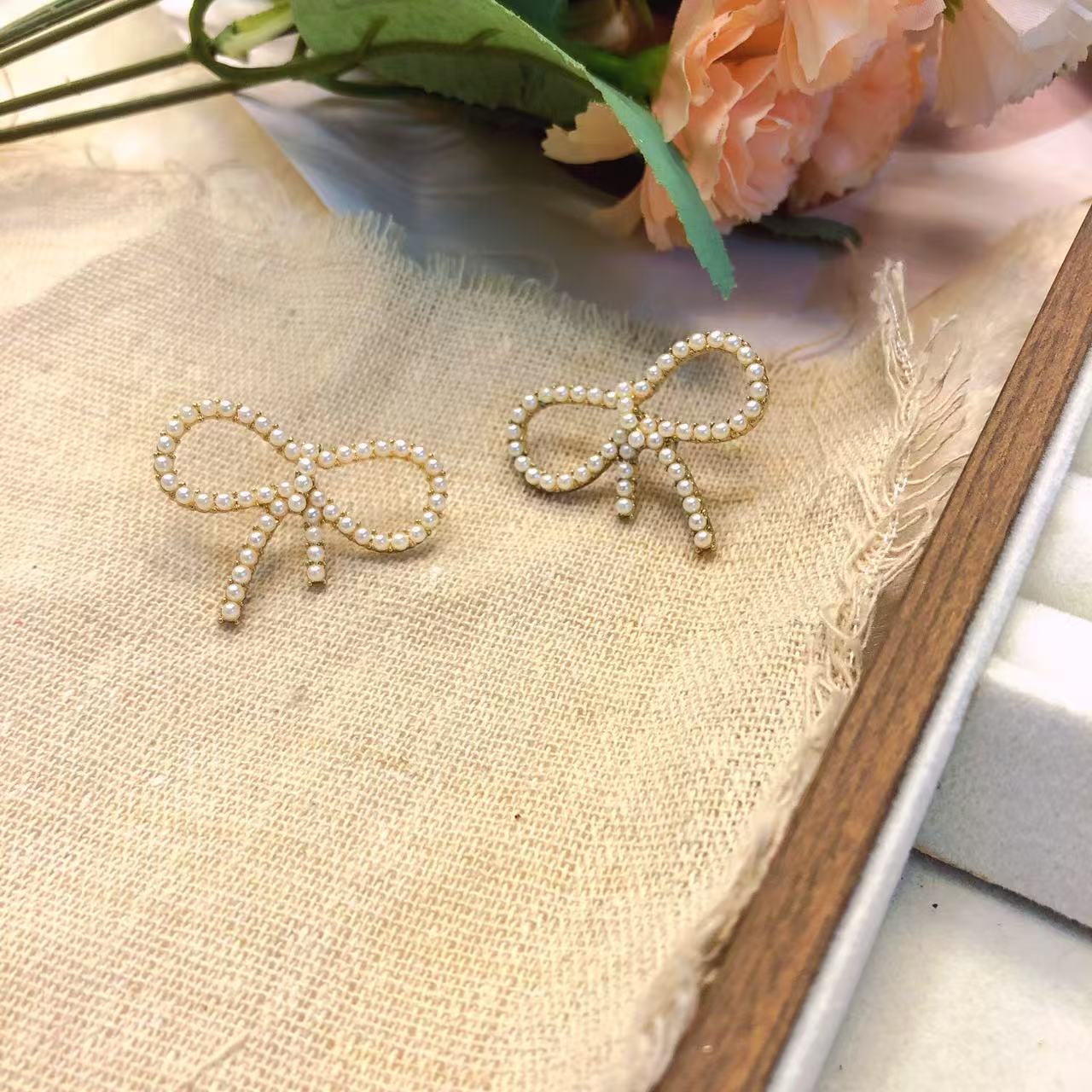 Rose Gold Flower Pearl Earring Ear hoop