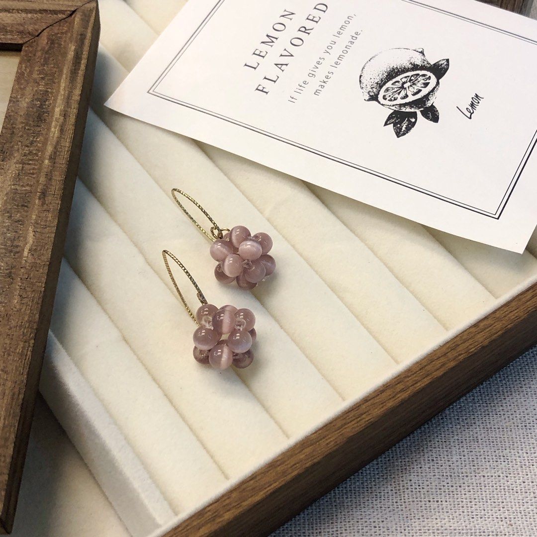 Purple Cat Eyes ear hook earring hand made