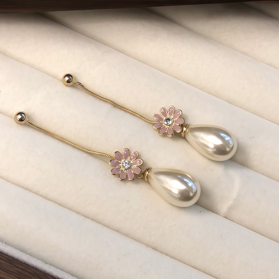 s925 pink daisy pearl earrings long earrings quantity
